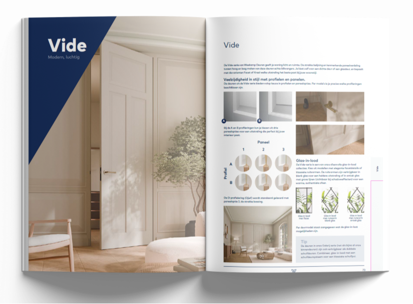 Onze prijzenboeken zijn vernieuwd en bestaan nu uit twee aparte edities: één voor binnendeuren en één voor buitendeuren. Duidelijk gescheiden, logisch opgebouwd en afgestemd op verschillende woonstijlen.